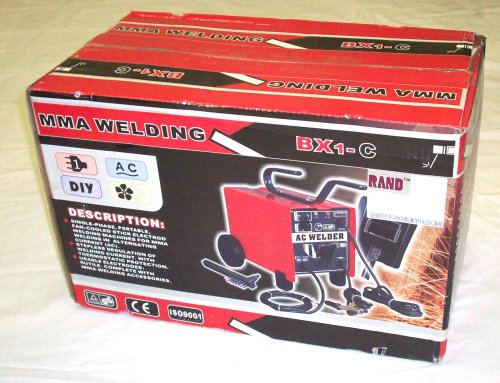 Rand Stick Welder, This new Rand Powerweld Stick/Arc/MMA Welder is so portable, it is perfect for the home shop or carry it in your vehicle! This portable welder is ideal for welding steel in your workshop. It can be hooked up to a standard household outlet, or, for very thick metal, you can hook it to a 220V outlet. You can adjust the welding amperage from 60 to 200 amps. The built in handle and wheels add to the portability and convenience of this welder. It includes a combination cleaning brush/hammer and a mask to get you started. Please note: We have sold hundreds of these units and have had nothing but great responses to their performance! The features of this new welding set include: Brand new RAND Powerweld BX1-200C Stick/Arc/MMA welder. Perfect for welding all types of steel in your home shop. Can be hooked up to a standard 120V household style outlet, or for more power, can be hooked to a 220V outlet. Easily adjust from 60-200 amps by just turning the knob on the front of the machine. Output of welder is 60-200amps DC, 10% duty cycle. The included Stick (MMA/Arc) handle has an overall length including cord of 7'. Includes ground clamp and cord with an overall length of 5'-6". The welder itself measures approximately 24"L x 17"H x 13"W Includes combination brush/hammer for cleaning your workpiece. Includes handheld mask for quick tack welding. Includes a 110/220V switch that can be locked out with a stop if you routinely use only one voltage. Includes an overheat light to alert you if the welder's temperature gets too high. The power cord is set up for wiring it directly to your power supply. If you want it to be more portable, you can easily use a 120V or 220V cord end. Includes everthing you need to get started except your welding rods/sticks that are 2-4mm diameter. These are available at any local welding supply or home center. This welder is very easy to use.