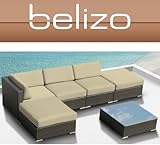 BELIZO LACANAU 6pcs Light Beige, Create a beautiful outdoor seating area that you have always dreamed of! Constructed from a lightweight aluminum frame and hand woven with a rich Espresso Brown color PE wicker, this set is designed to withstand the elements. The LACANAU collection will be the center for any outside gathering for years to come. It is a timeless design highlighted by clean lines and minimalist charm. It is designed to keep you and your friends comfortable for hours! Purchase with Confidence! Product Dimensions: Corner Chair 32 x 32 x 24 inches, Middle Chair 27.5 x 32 x 24 inches, Ottoman/Coffee table 32 x32 inches ; 180 pounds . Cushions included, removable covers for easy clean up ...